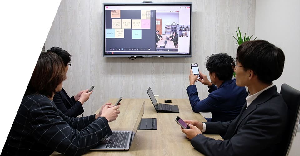 資料表示や書き込み内容を、会議室の画面そのままのクオリティでオンライン参加者と共有できるため、場所に左右されないスムーズな打ち合わせが可能です。